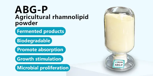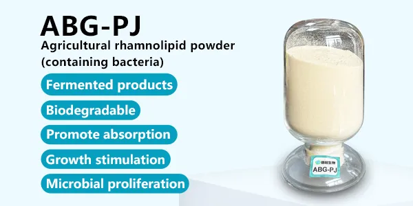 ABG-SJ is directly dried by adding a carrier to the fermentation broth of sophorolipid, and the product contains bacterial cells. Products can be used in fertilizers, pesticides and functional agricultural products. It can be used to reduce surface tension, increase spreadability, promote absorption, and enhance efficiency.