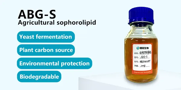 Agricultural bioglycolipids are glycolipid metabolites produced by specific microorganisms through fermentation technology. ABG-S is an agricultural liquid model of sophorolipid, a new biological additive that can be used in fertilizers, pesticides and functional agricultural products. It can be used to reduce surface tension, increase spreadability, promote absorption, enhance effectiveness, and emulsify.