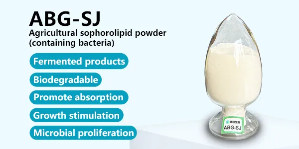 ABG-SJ is directly dried by adding a carrier to the fermentation broth of sophorolipid, and the product contains bacterial cells. Products can be used in fertilizers, pesticides and functional agricultural products. It can be used to reduce surface tension, increase spreadability, promote absorption, and enhance efficiency.