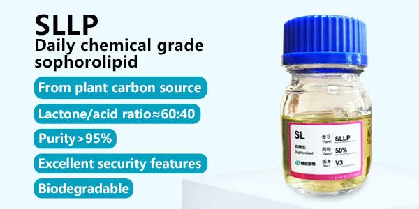 Bioglycolipid SLLP is a sophorolipid surfactant produced by fermentation process. Its molecular structure includes lactone sophorolipid and acid sophorolipid. It is made from food-grade sugar and vegetable oil as carbon sources, which are then purified and concentrated. The product is easily soluble in water and some organic solvents, resistant to high temperatures and high salts, and has moderate foam volume. It has excellent surface properties, is non-toxic, easily biodegradable, and environmentally friendly. It can be used in various civilian fields such as daily chemicals, cleaning, and home care.